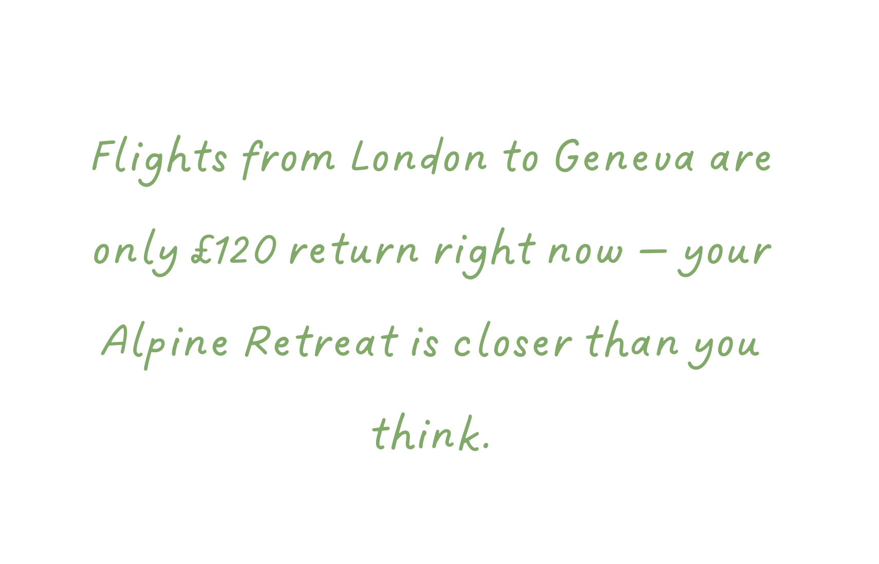 Easy Getaway: Just a short flight to Geneva, followed by a scenic mountain drive - a world away, yet surprisingly easy to reach.